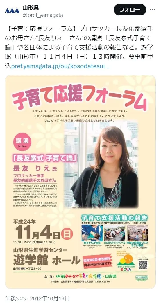 いずれも真偽を確定する公的資料が公表されているわけではありませんが、多くの報道や講演活動で「長友りえ」さんとして紹介されているため、一般的には「りえ」表記が定着している状況です。