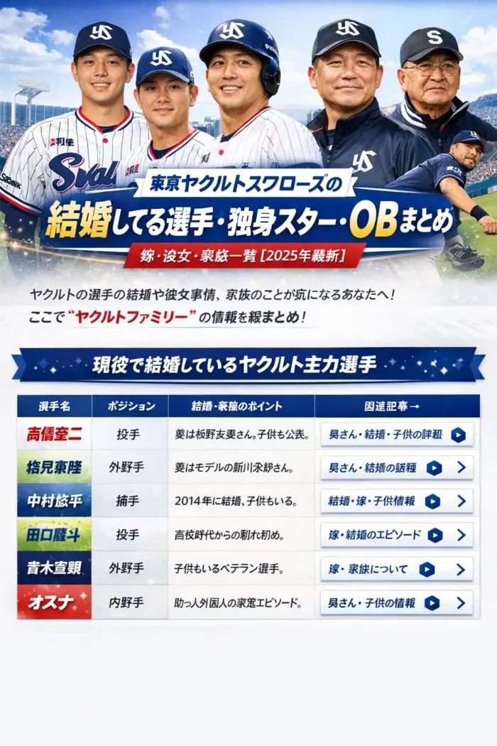 東京ヤクルトスワローズの結婚してる選手・独身スター・OBまとめ|嫁・彼女・家族一覧〖2025年最新〗