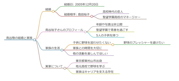 元プロ野球選手の鳥谷敬さんは、2005年12月20日に結婚しました。当時、彼は24歳で、結婚相手は高校時代からの恋人である島田裕子さんです。裕子さんは聖望学園高校の野球部のマネージャーを務めていました。